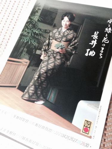 梅村先輩(呉服店様)より、地元のお宝プレゼント頂く。長井紬組合製作による、島田陽子の81年の暦。調べてはいないが、彼女が米TV連続ドラマ"将軍"でヒロインをする直前?大ブレイク前にの起用だと思う。そして、長井紬の絶頂期だけあり、紬の出来上がり具合も素晴らしい。レアなカレンダーは色々あれど、例えば、NTTの鈴木京香の2001年卓上カレンダーが限りなく霞む。。