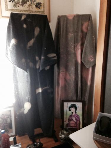 メンズデニム着物"ベニバナグランジ・白ヴァージョン"プロデュース特選呉服いちまた 齋藤直也090-2889-9828xtdnq298@ybb.ne.jp本年も弊店、新生、ベニバナグランジを宜しくお願いします。零時ともにベニバナグランジ白ヴァージョンを飾り付け。(写真左側)今まで試行錯誤(去年のプロトタイプ)を続け、年始に何とか間に合いました。・雪色ブリーチに成功・白鷹産紅花抽出液でブリーチ部位にほのかな、紅花色を染めました。・真夏以外の着用可能(例えば、冬は、羽織、綿入れ半纏の中に着用。)一応はメンズ。サイズはMとLでイメージ文様注文は、お客様自身が行えます。○金額29500円税込価格です。気軽にご相談下さい、電話、メールからどうぞ。