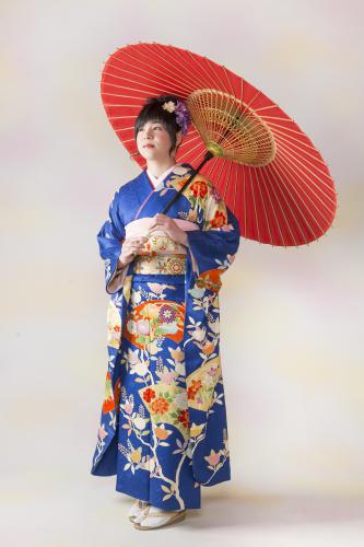 格調高き手描き振袖と特選西陣袋帯の取り合わせは絶妙だ。振袖お客様モデルの繊細で、時折の笑顔が美しい。あら町レトロエリアでの撮影の貴重。海外経験の持つカメラマンが腕を振るった!