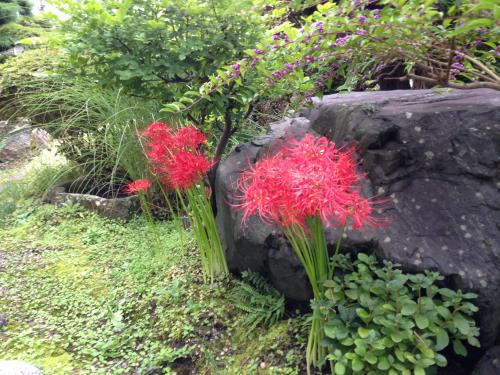 秋本番、好天の場合いちまた庭も素敵な和のロケーションに。まずは、可憐に彼岸花が咲き開きました。