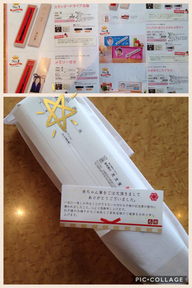 先月おじいちゃん・おばあちゃん・ママと一緒に前髪伸びたからとご来店の女の子。せっかくだから切った髪の毛で赤ちゃん筆のご注文を頂きました。そして1ヶ月で商品が届きました。今回は小さい紅筆付きタイプ。