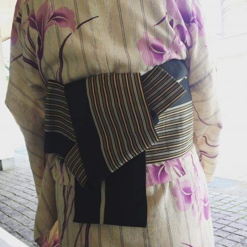 お客様ご来店の流石。本日は、吉弥結びにて遊びにいらして。(いちまたご購入の博多織も素敵です。)メカニカルで美しいと形容したくなる。私と違い、車社会に無縁のお客様は、日傘で静々と帰宅されました。#吉弥結び #いちまた