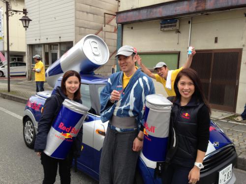 千人芋煮会直前、けん玉スパイク前で。レットブル・レディーと!ベイスターズのロペスが、それ愛用!今日のCSの勝利を確信して^_^