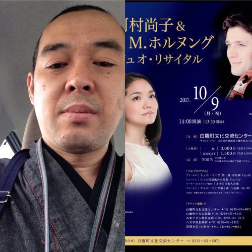 10/10勿論、着物でクラシックリサイタル行ってきました!河村尚子ピアノと、バイエルンフィル元主席チェロ奏者のDUOブラームスやドビッシーなど、二人の愛するドイツクラシック音楽を堪能。ゲルマンより圧倒的にラテン好きだった私が、最近のクラシックの傾倒でドイツ(オーストリア)に、魅力を注視してきています。最高の音楽に、あゆ〜むの音響。ドイツ人の美男に比べ、河村の扁平に見えてしまう顔も、又 ひと味の美くしさでした!(たまたま同級生と相席も幸運でした!)12月は山形市にて、大好きバロック チェンバロの梅津樹子のソロコンサート。イヤにクラシックづいてます(^_^)