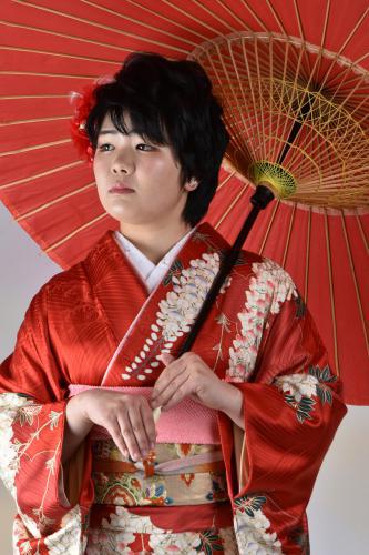 時は雪国も、もう春です。逸品特選振袖は綸子縮緬の総シルク(光沢がある独特のシルク)です。次節の、白藤です!昨月、歌舞伎座にて、松竹大歌舞伎『仮名手本忠臣蔵』七段目を鑑賞して参りました。結局、板東玉三郎のお軽役の独壇場でした。こちらの、お嬢様の白藤お振袖姿にて、玉三郎の藤娘を思い出したりしまして。少女が聖女になる瞬間を映し出しました!
