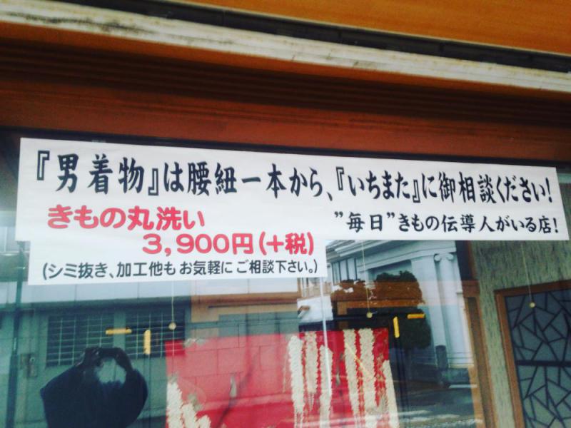 弊店いちまた では、最強の着物応援団として、着物丸洗い3900円税抜価格を英断しました!勿論、正絹もので大丈夫??♂?です。できる限り、着物を着る方に負担のかからないよう、弊店いちまた の着物応援団の真髄です。お手入れ所は、染織集積地の新潟県十日町市ある、ふしっかりしたメーカーに出します。発送業務は、致しておりません。御面倒掛けますが、弊店にお手入れものを、お持ち下さい。(染抜き、加工他も気軽に御相談下さい。)☆いちまた特選呉服と振袖レンタル写真館代表取締役社長 齋藤直也(八代目)http://ichimata.com/xtdnq298@ybb.ne.jp090-2889-6828#いちまた着mono#着物丸洗い3900円税抜価格#着物丸洗い大特価
