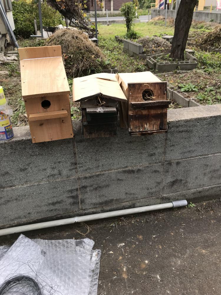 当店母屋の軒下にあるスズメアパート。結構利用するご夫婦が多いんですよ。ただ今、空室中にリフォームいたしております。新品の寝具・駐車スペースございます。毎朝、朝食付きでごさいます(近くのお地蔵様用のご飯ですが…)ご興味のあるスズメさん、お気軽にどーぞ。