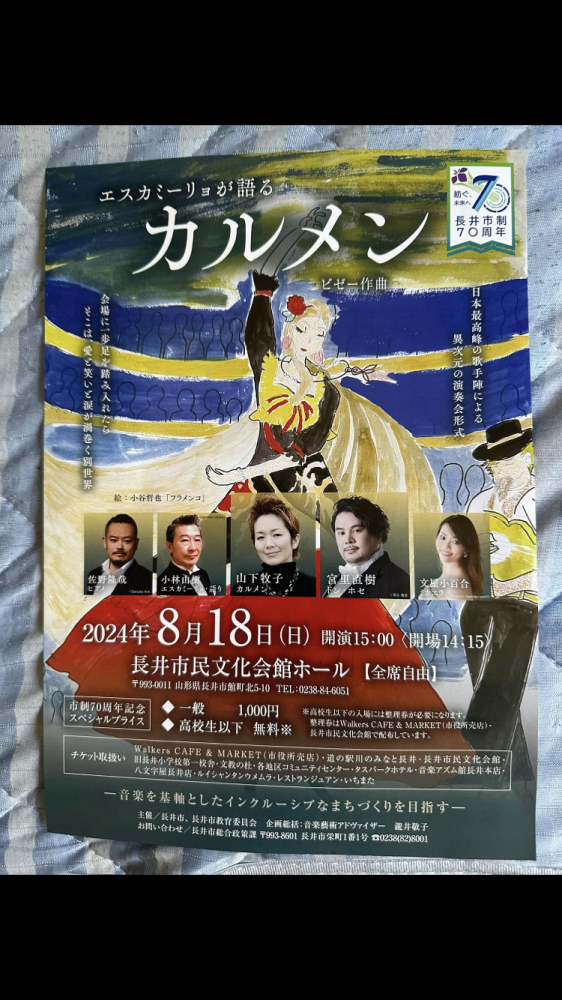 長井市周年祭で特選歌手(役者)複数による、コンパクトオペラ・カルメンを鑑賞。オペラはもっぱらFMで。地元での鑑賞は、長井市に感謝です。最近、私が会長している、#あら町商店会 に#吉田商店 さんがオープンし、#レコード屋 もやってます。ブラック系、ブルーズ、ソウル、ヒップホップなどストリートから生まれた音楽です。方やオペラは、クラシックが成熟しオーケストラで最高の役者の布陣で、最強ならオペラ座で!(音楽も欧州コンチネンタル言語は、最強ですね?)※この場合は、英国は除く。又、その時代、トップ層の有力欧州各国は、帝国主義の激戦に進んでいたかもしれません。・長く席捲した欧州の、キリスト教から始まった発展音楽の代表がオペラ。ほぼそれ以外が、ストリート生まれや、地域民謡なのでしょうか。