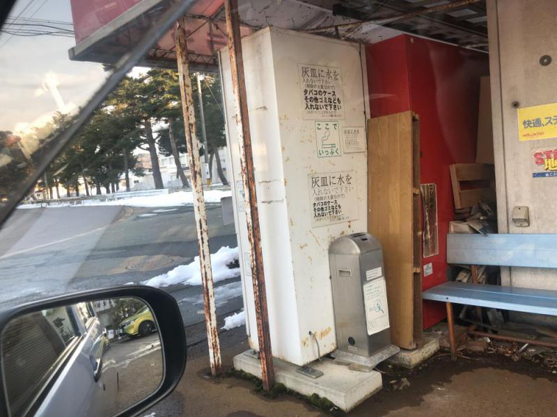 ▼高校前に、その自販機と喫煙所