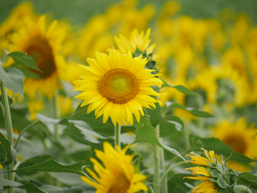 べに花温泉ひなの湯の側にある3000平方メートルの畑に咲く、約1万2000本のヒマワリ。