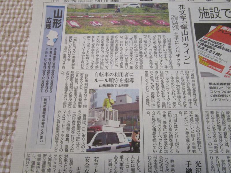 今日の山新にばっちし、掲載されました。横に長く見やすい画像。これまでの経緯や取り組みの概要まで、さすがにプロの記者さん、うまいなあって^0^ 早速いろんな方からの激励や賞賛の声を頂きました。今後の励みになりますねっ。13日はどうも朝から雨模様の予報なので、植栽作業は14日(日)に順延しました。取り上げて頂いた山新さん、そして記者さんに深謝です。ありがとうございました!まだまだ見頃は続きます。みなさん、声をかけ合って、ぜひ一度足を運んでくださいね。お待ちしてま〜〜す。尚、『協賛者依頼』の覧を設けております。当プロジェクトが年々充実発展するようご支援して頂ければ、幸甚です。『地域創生』のため微力を尽くす所存ですので、どうぞよろしくお願いいたします。