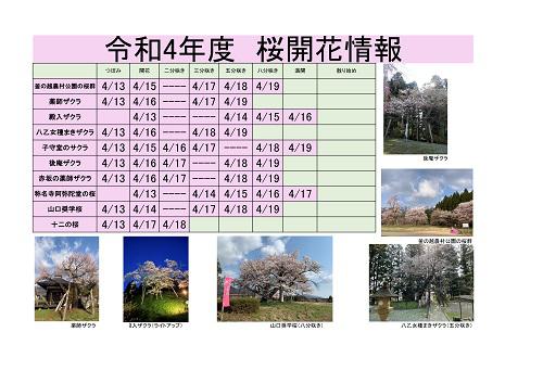 ▼令和4年度 白鷹町さくら開花情報