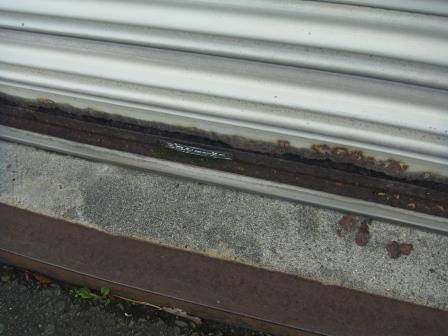 車庫の内部から外の様子が伺えるくらいに腐食が進み、外部から光が漏れてきます。