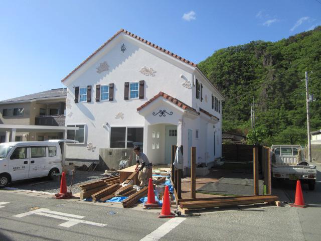 本日は天気が良いので、塀の板張り施工と人工芝張を開始しました!出来上がりがたのしみ〜!