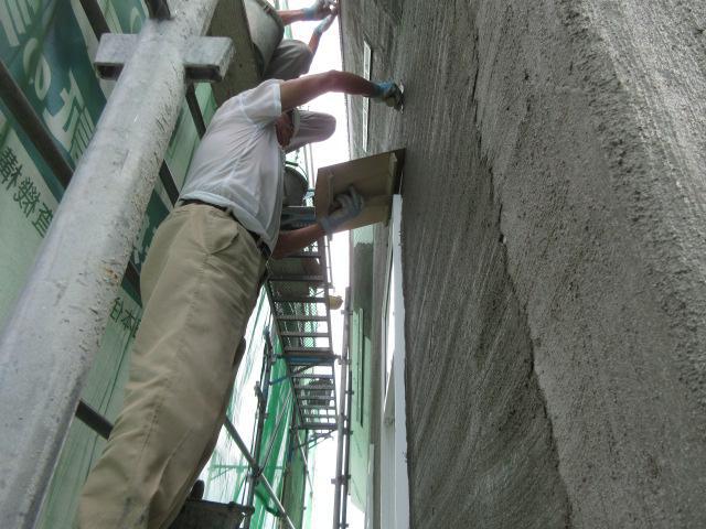 いよいよ外壁塗り壁を開始しました!!月末足場解体で〜す!!白い外観 早く見た〜い!!ベテラン職人の腕を見てください!!さすが〜です。早い!