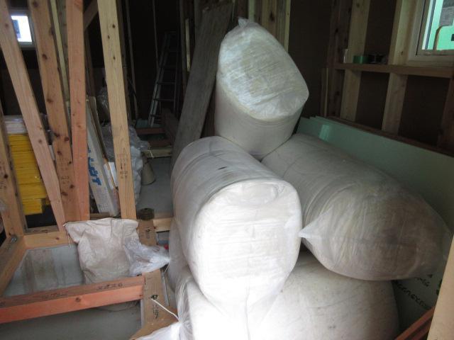 羊毛断熱材「ウールブレス」現場に入荷しました!現場がすこしせまくなりました〜これで、今年の冬はあったかいぞ〜!!
