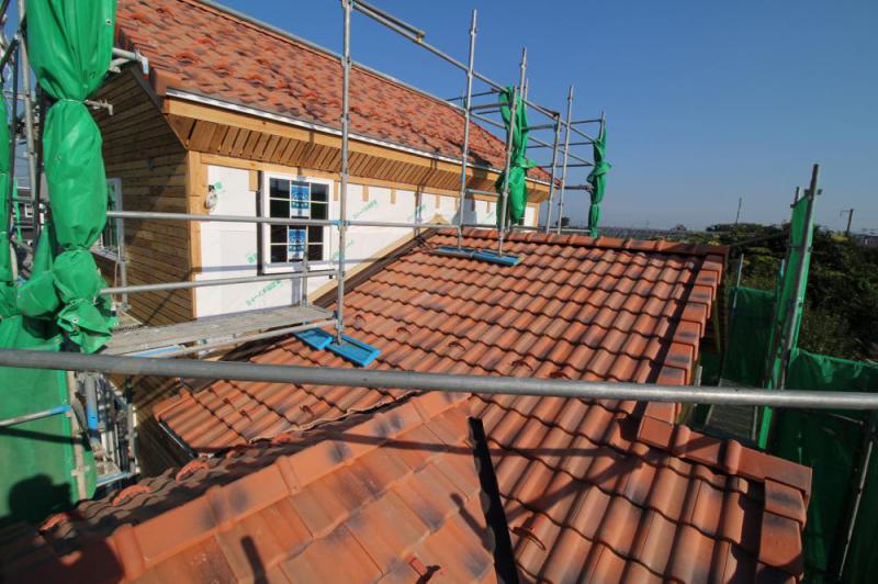 屋根の瓦工事が終りました!!白い外壁には、この色が一番似合います。!!