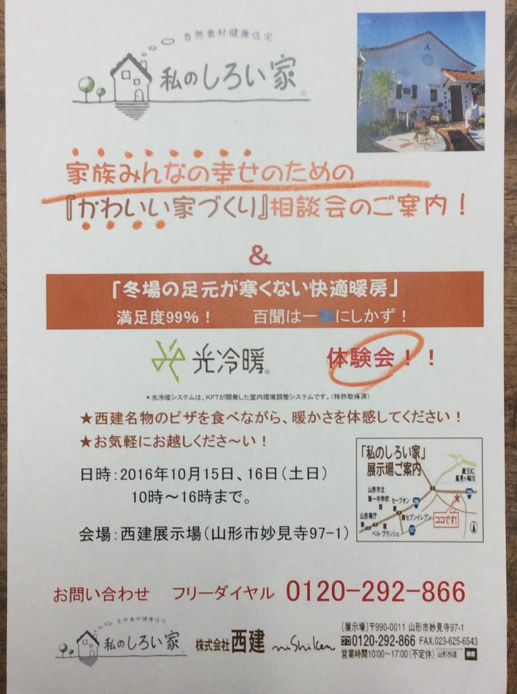 朝晩だいぶ気温が下がってきましたね!さて、今月のイベントのご案内です!!『家族みんなの幸せのための「かわいい家づくり」相談会&光冷暖 体験会』を開催いたします。10月15,16日の土日10時から16時までです。お待ちしております。