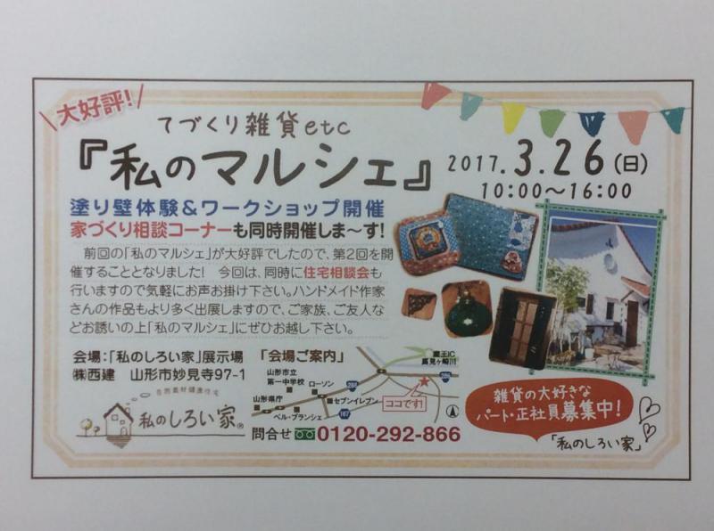 好評だった前回に続き、第二回「私のマルシェ」を開催いたします!!今回は、塗りかべの体験コーナーや、ステキなワークショップも開催いたします。楽しみにご来場ください!!