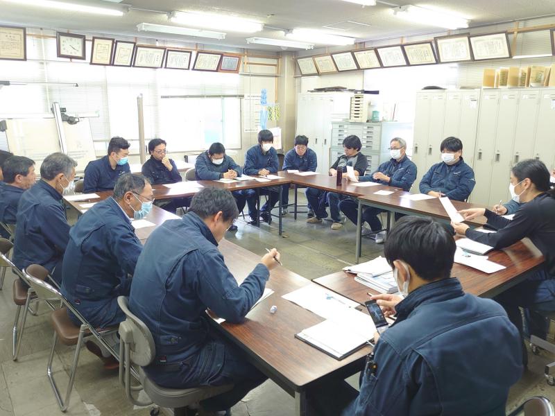 今回は、安全運転管理者の変更の報告や、作業に必須のヘルメット・安全帯の購入について話し合いました。
