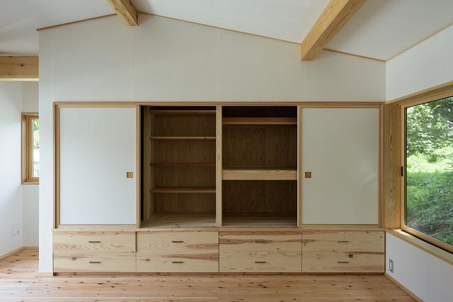 〈おだち木組みの家〉 設計データ■所 在 地 :山形県山形市■用 途:一戸建ての住宅■構造規模:木造軸組工法2階建て■敷地面積:1752.78u(529.1坪)■建築面積:176.42u(53.2坪)■床 面 積 :1階/152.78u(46.1坪) 2階/28.16u(8.5坪) 延床/180.94u(54.6坪)■設 計:2016.04〜2017.01■工 期:2017.03〜2017.09■設計監理:葛燗熄泄F設計工房■施 工:古民家ライフ梶。撮 影:前田有歩、長岡信也