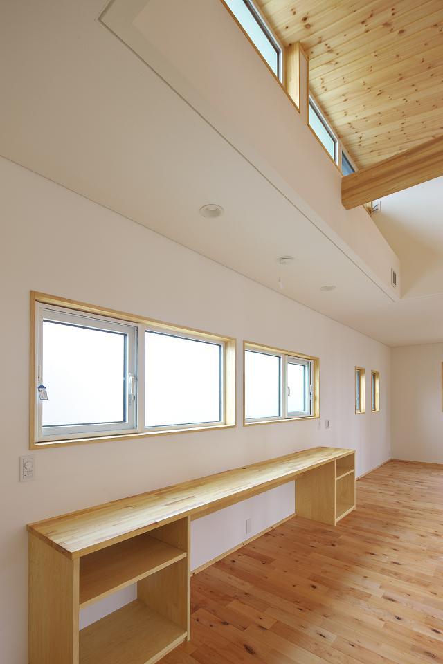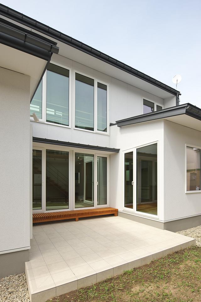 〈ふきぬけ住まい ―コートハウスとハイサイドライト―〉 設計データ■所 在 地 :山形県山形市■用 途:一戸建ての住宅(車庫付)■構造規模:木造軸組工法2階建て■敷地面積:270.34u(81.6坪)■建築面積:135.79u(41.0坪)■床 面 積 :1階/ 96.05u(29.0坪) 2階/ 66.68u(20.1坪) 車庫/ 33.95u(10.3坪) 延床/196.68u(59.4坪)■設 計:2015.07〜2015.12■工 期:2016.01〜2016.06■設計監理:葛燗熄泄F設計工房■施 工:渇チ藤住建■撮 影:長岡信也