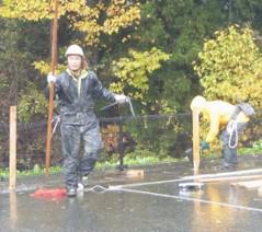 この日は、位置決め「丁張り」を行ないました。地盤の高低差を考え、レベル出しからスタート、これから約1か月間かけて、作業を進めてまいります。