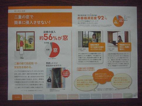 既存の窓に内窓*インプラス*設置することによって、2ロックとなり、防犯対策にも役に立ちます。さらに特殊な「中間膜」を2枚のガラスの間に挟んでいる防犯合わせガラス」を入れれば、耐貫通性に優れ、「こじ破り」や「打ち破り」などの対策にも有効です。