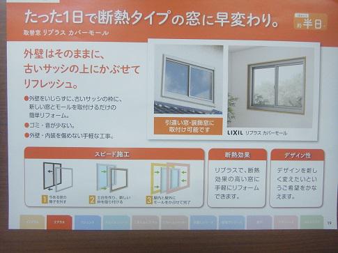 取替窓*リプラス*外壁をいじらずに、古いサッシの枠に、新しい断熱窓とモールを取り付けるだけの簡単「窓リフォーム」。外壁や内装を傷めない、手軽な工事。デザイン性にも優れ、たった一日で、断熱窓に早変わり('ω')ノ