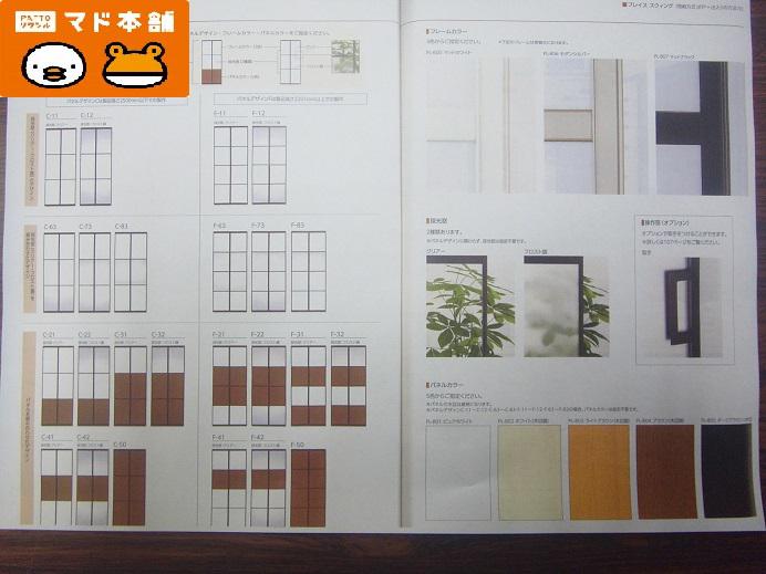 採光窓はクリアー・フロスト調の2種類、パネルカラーはピュアホワイト、ホワイト(木目調)、ライトブラウン(木目調)、ブラウン(木目調)、ダークブラウン(木目調)の5種類、フレームカラーは、マットホワイト、モダンシルバー、マットブラックの3種類、オプションとして、取手を付けることも可能です。パネルを色々組合せたパターンもご覧下さい(*^▽^*)