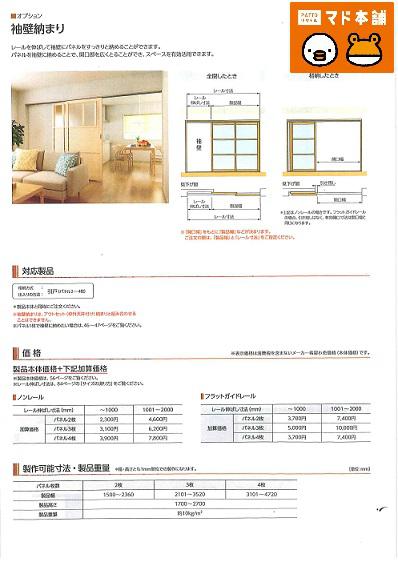 開口部を広くとる工夫*スペース有効活用*レールを伸ばして袖壁に収納が可能となり、レールも@ノンレール方式Aフラットガイドレール方式、どちらかの選択も可能となります。製品重量は、約10kg/m2が目安となります。パネル枚数は製品幅によって表記にような枚数となります(*^^*)