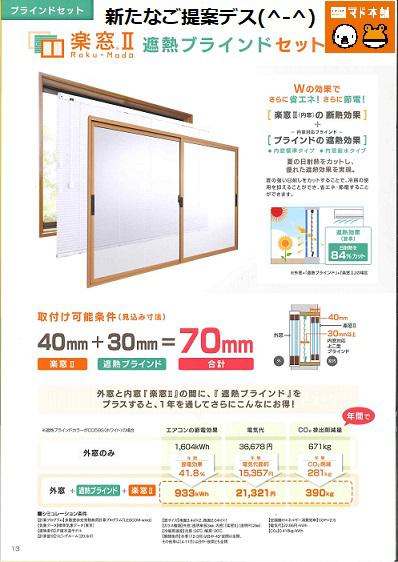 外窓と内窓「楽窓U」の間に*遮熱ブラインド*を設置することによって、W効果で「省エネ」+「節電」➡夏の日射熱をカット、優れた遮熱効果を実現します(^O^)/