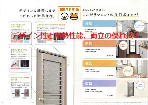 主な特徴@カギを閉めたまま換気が可能Aお住まいの地域に合せて最適な断熱性能B大きなガラスで光をタップリ採りこむC万全の防犯性能、*暮らしをより安全により快適に*これらが「リシェント」の注目ポイントです(^。^)y-.。o○