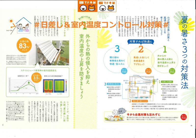 対策@日差しの遮断:室温を上げない工夫、窓から入る熱量をコントロール対策A風の通り道を作る:採風タイプの玄関ドア、通風型の建具を選択対策B断熱性を高める:遮熱効果のある窓を選択◆太陽熱を83%カットするには「スタイルシェード」が有効(*^▽^*)◆