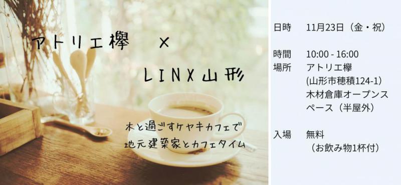無垢材を提供してくれるアトリエ欅さんとのコラボイベント第三弾!無垢の木に囲まれながら過ごす「ケヤキカフェ」はとても癒されます。LINX山形では、木の家づくり展示や地元建築家による家づくり相談、片づけお悩み相談などを企画しています。建築家ってどんな人?ふだん聞きたくても聞けない話を、温かいコーヒーを飲みながら気軽に聞いてみませんか。【同時開催】木のプレートを作るワークショップ気に入った木の板を選んだら、のみで削ってプレートに仕上げていきます。 所要時間:30〜60分参加費:1000円程度(材料費/樹種や大きさにより変わります。)事前の申し込みが必要です。1)お名前2)人数3)到着時間4)ご連絡先の電話番号
