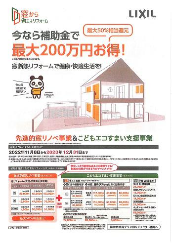 窓の断熱リフォーム等が対象となる、大変お得な補助金についてのご案内です。