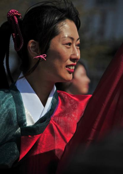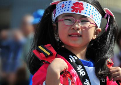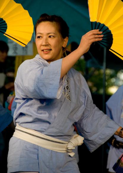 写真は民謡流しの一コマで「鷹山連」の「cheerful新体操クラブ」の