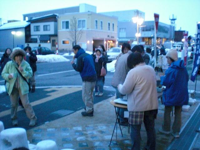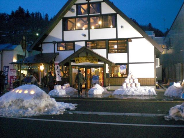「なんよう雪灯かりまつり」赤湯温泉通り会場の様子です。”ゆーなびからころ館”を中心に行われました。点灯時間の午後5時はまだ薄明るかったのですが、次々にのお客様がいらっしゃいました。