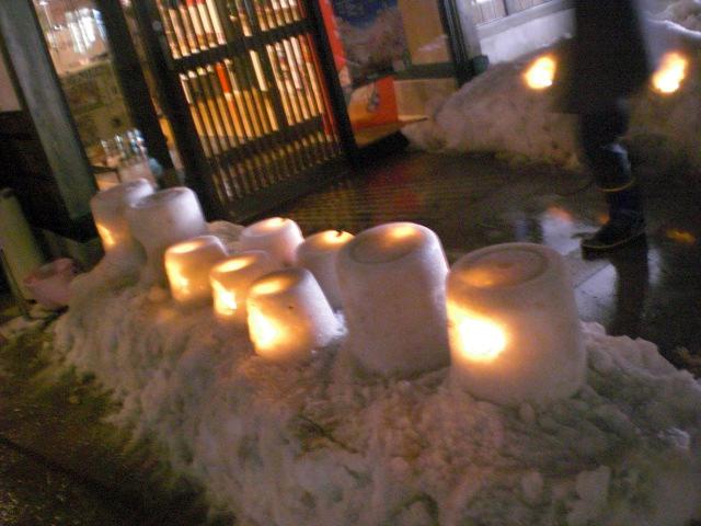7日は赤湯温泉の旅館の皆さんにもご協力いただき、各旅館の前にオリジナルの「雪灯かり」を灯していただきました(^^)