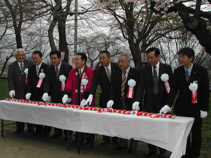 開幕行事の点灯式が行われ、いよいよ「赤湯温泉桜まつり」が始まりました。午後6時から10時まではライトアップも行いますので夜桜も楽しめます(^^)ぜひ見事な桜を見に来てくださいね♪