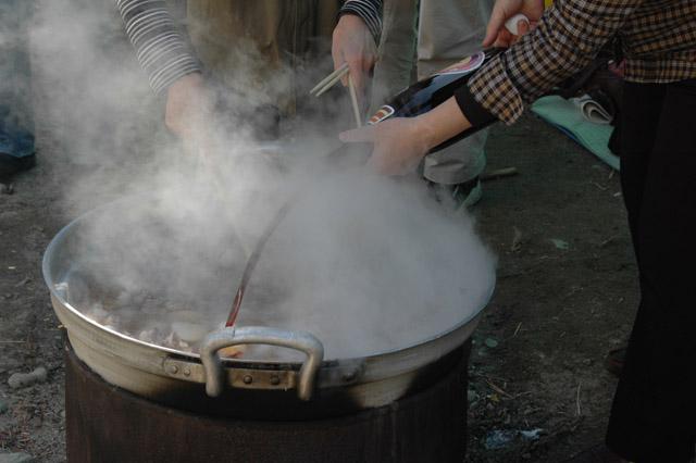 鍋の周りにはあっという間に人だかりが。
