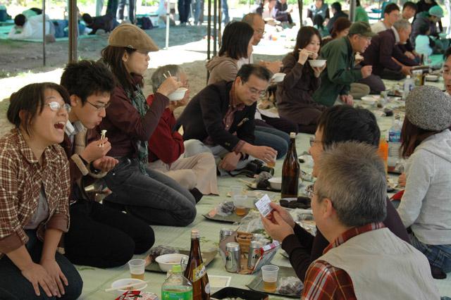 皆さん芋煮を囲んで大いに盛り上がってます!