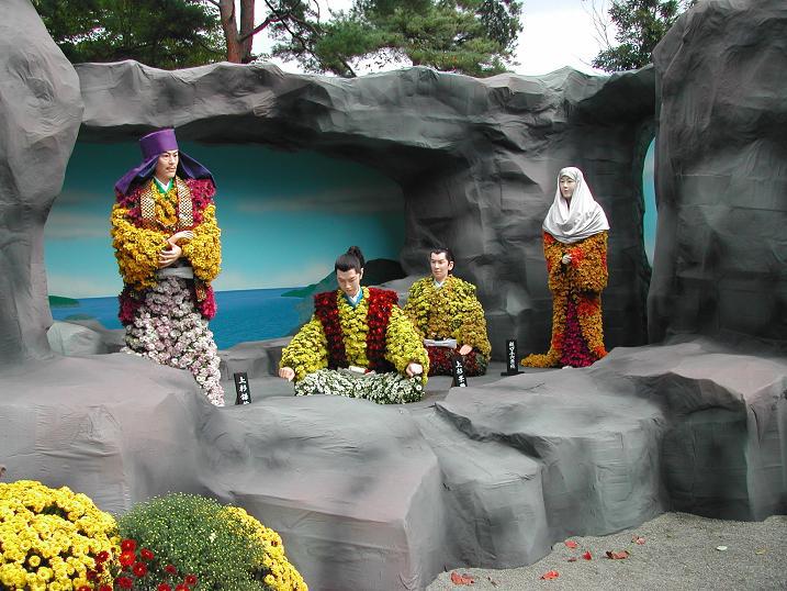 「南陽の菊まつり」第3景は「春日山城 岩谷堂」です。景勝は「織田信長には”義”などない」と言い、謙信に戦いを決意させました。これが兼続の初陣となります。