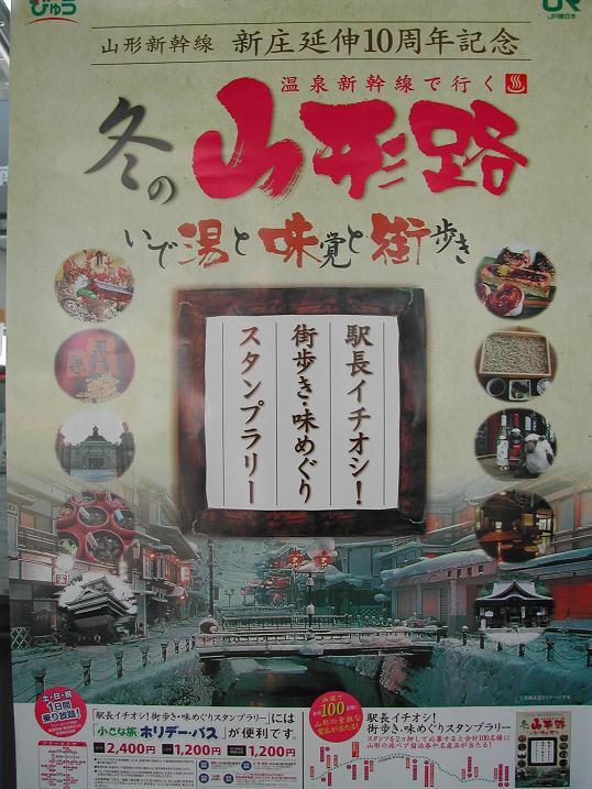 ”山形新幹線新庄延伸10周年記念”として各駅で「冬の山形路〜いで湯と味覚と街歩き〜」が始まりました!スタンプラリーで素敵な賞品も当たりますよ♪
