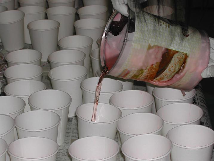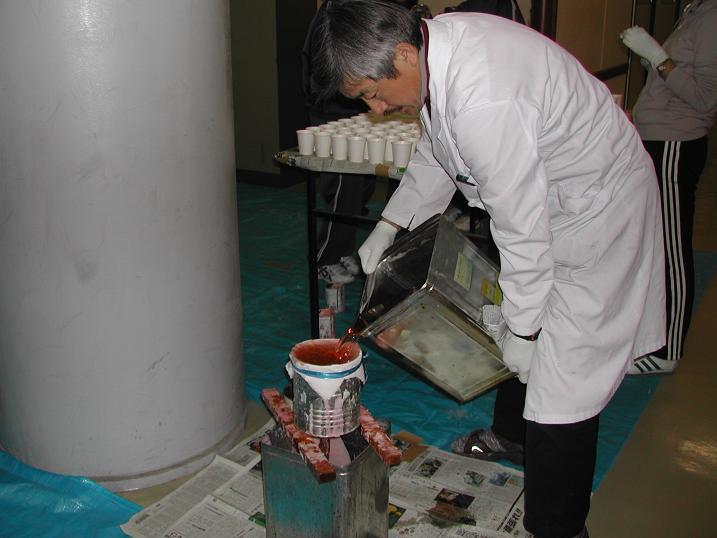 ”キャンドル作りの名人”八木さんもいらっしゃって、手際よく溶かしたろうを分けていきます。さすがです。