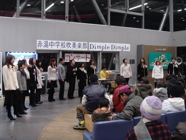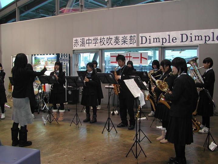 待合室では赤湯中学校吹奏楽部の演奏が行われ、生徒の腕に皆さん感心されていました。