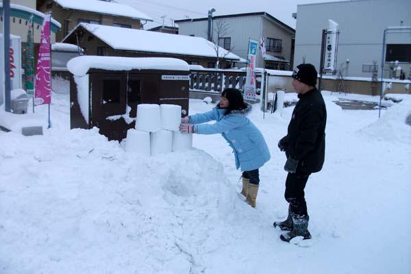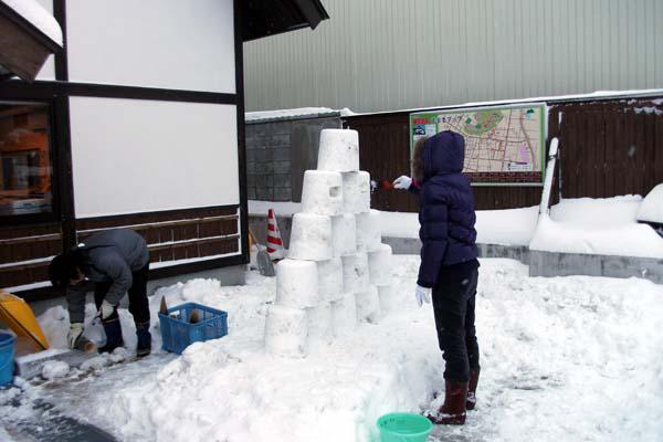 赤湯温泉通りは「からころ館」がメイン会場に行われました。寒いなかスタッフの皆さんがかまくら作りで大忙しです。