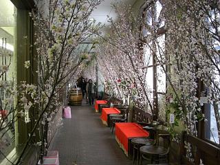 高畠ワイナリーでは、啓翁桜とボタンが見られます。