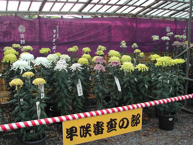 少々開花が遅れ気味だった菊花展会場の花も、だんだん咲きそろって来ました。明日は「早咲きの部」の審査会が行われます。どの作品が入賞するのでしょうか。