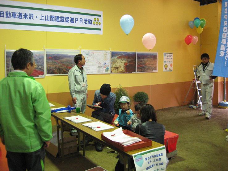 先日菊まつり会場で、「東北中央自動車道建設促進」のPR活動が行われ、来場者には、風船やポップコーンがプレゼントされました。